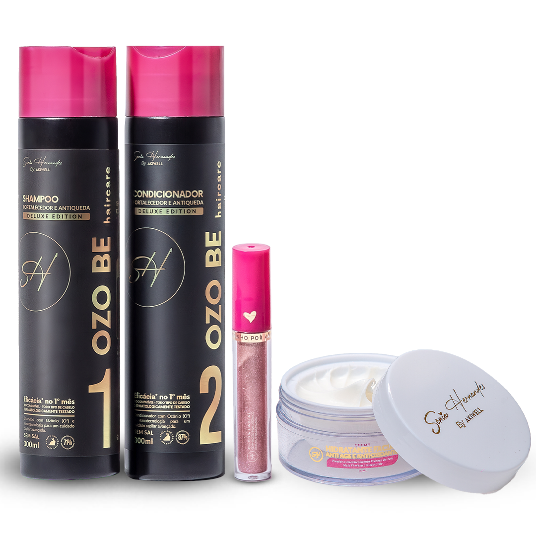 Shampoo Ozo Be Deluxe Edition: Mime seus cabelos com o Shampoo Ozo Be Deluxe Edition, uma fórmula revolucionária com ação antiqueda e limpeza detox. Infundido com ozônio e óleos nano encapsulados, este shampoo não apenas promove uma limpeza profunda, mas também fortalece os folículos capilares, reduzindo a queda e proporcionando um couro cabeludo saudável e livre de coceira.