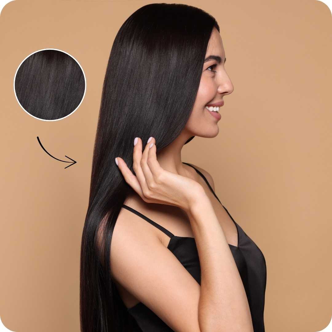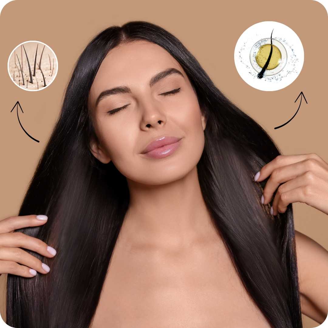 Seu cabelo evolui para um novo patamar: couro cabeludo saudável, fios fortes e crescimento acelerado.